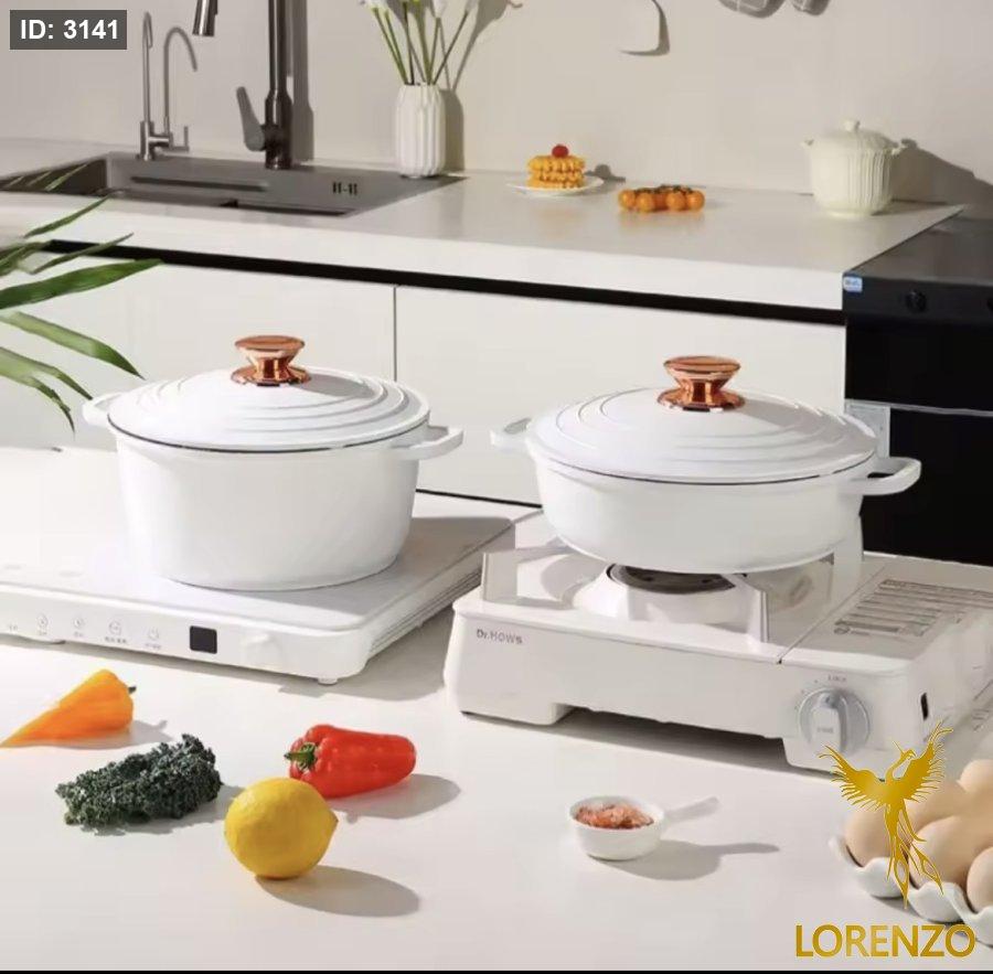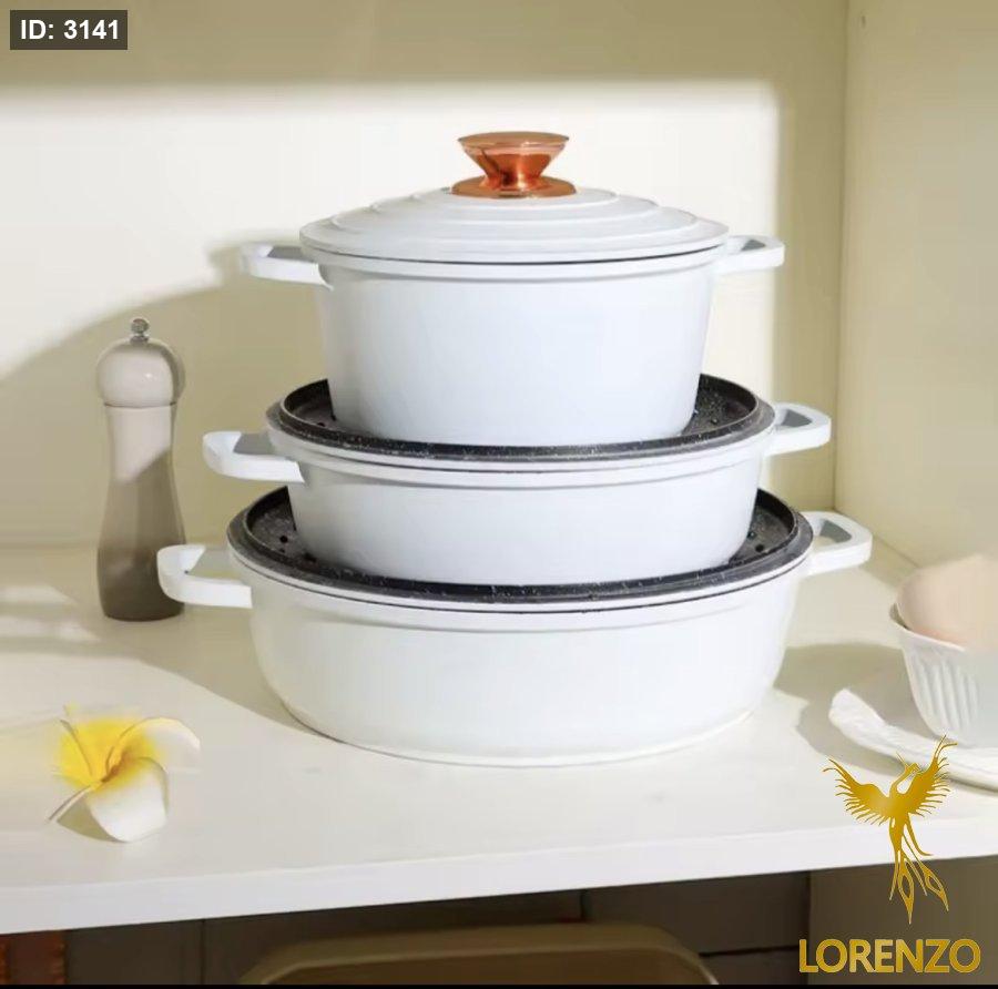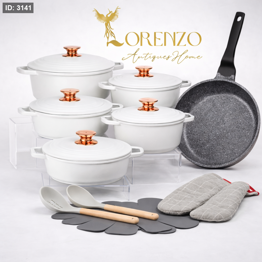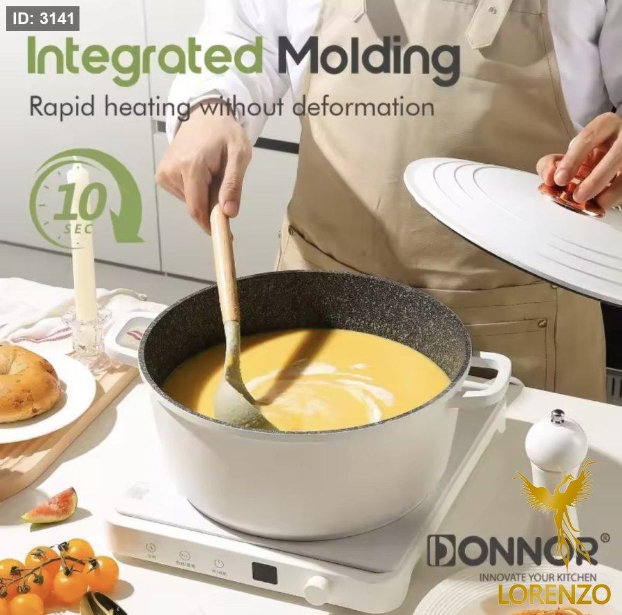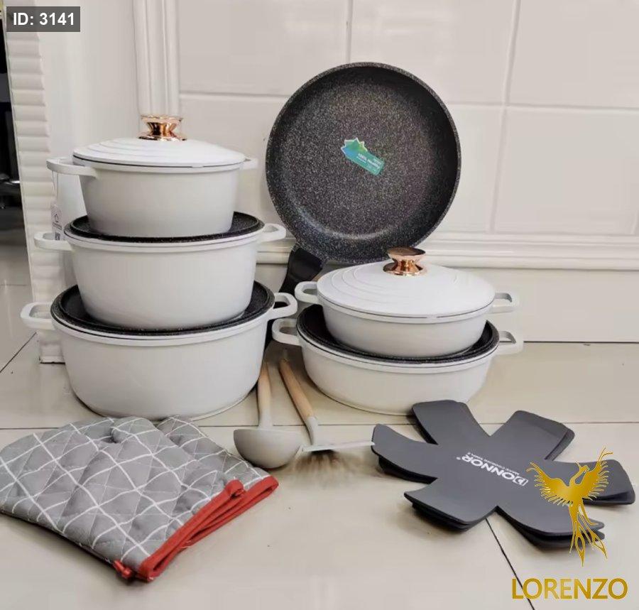 طقم طناجر دونور 18 قطعة أبيض – سكب غير لاصقة