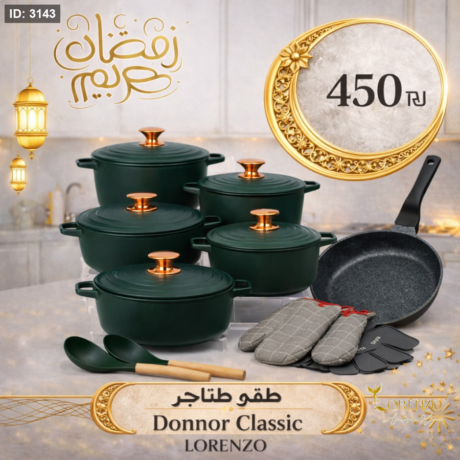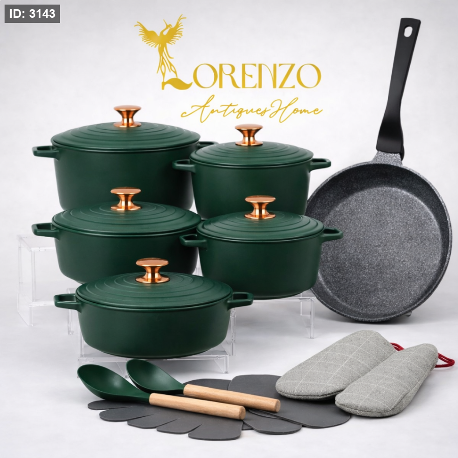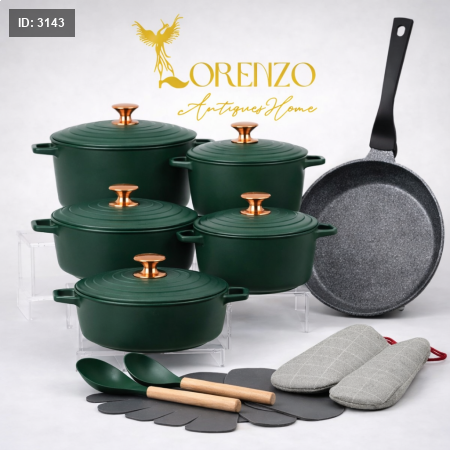طقم طناجر دونور 18 قطعة أخضر – سكب غير لاصقة