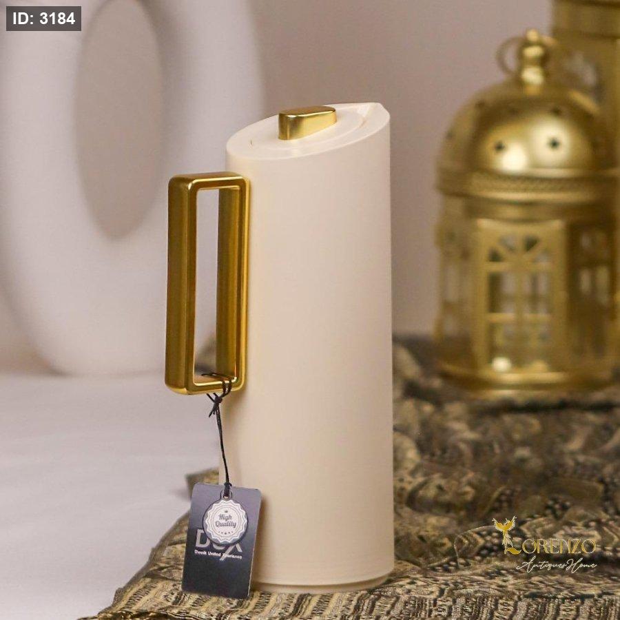 دلة ضيافة أنيقة باللون الأبيض مع مقبض ذهبي