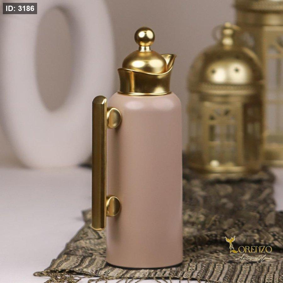 دلة ضيافة عصرية باللون الوردي الهادئ مع تفاصيل ذهبية