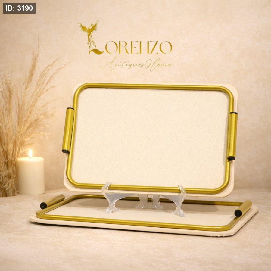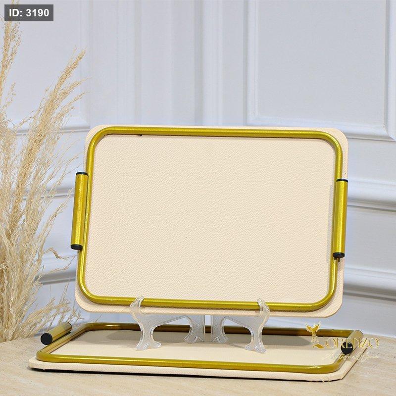 طقم صواني /2 مستطيل اطار تنك ذهبي وجه جلد كريمي بيدين مقبض