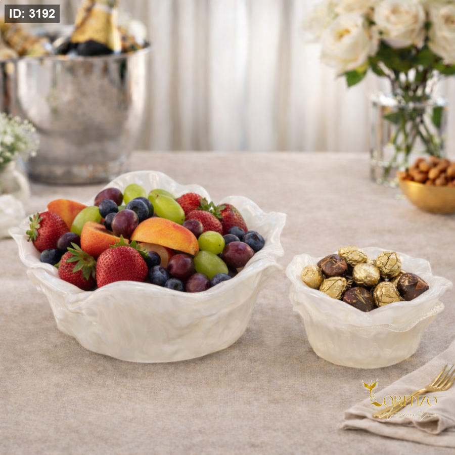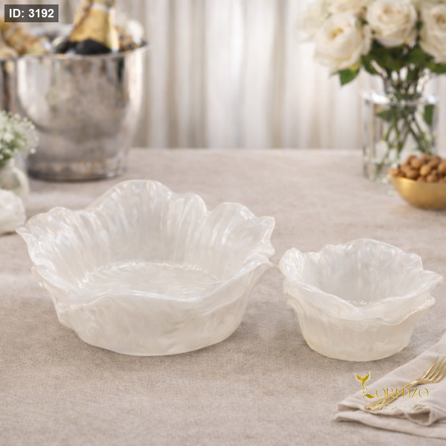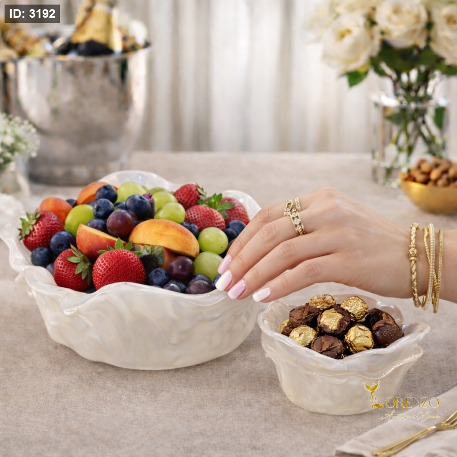 أضف لمسة فخامة ناعمة إلى طاولة ضيافتك مع طقم الجاطات المزدوج من لورينزو، بتصميم صدفي انسيابي ولون لؤلؤي راقٍ يعكس الذوق الرفيع في كل تفصيل.
