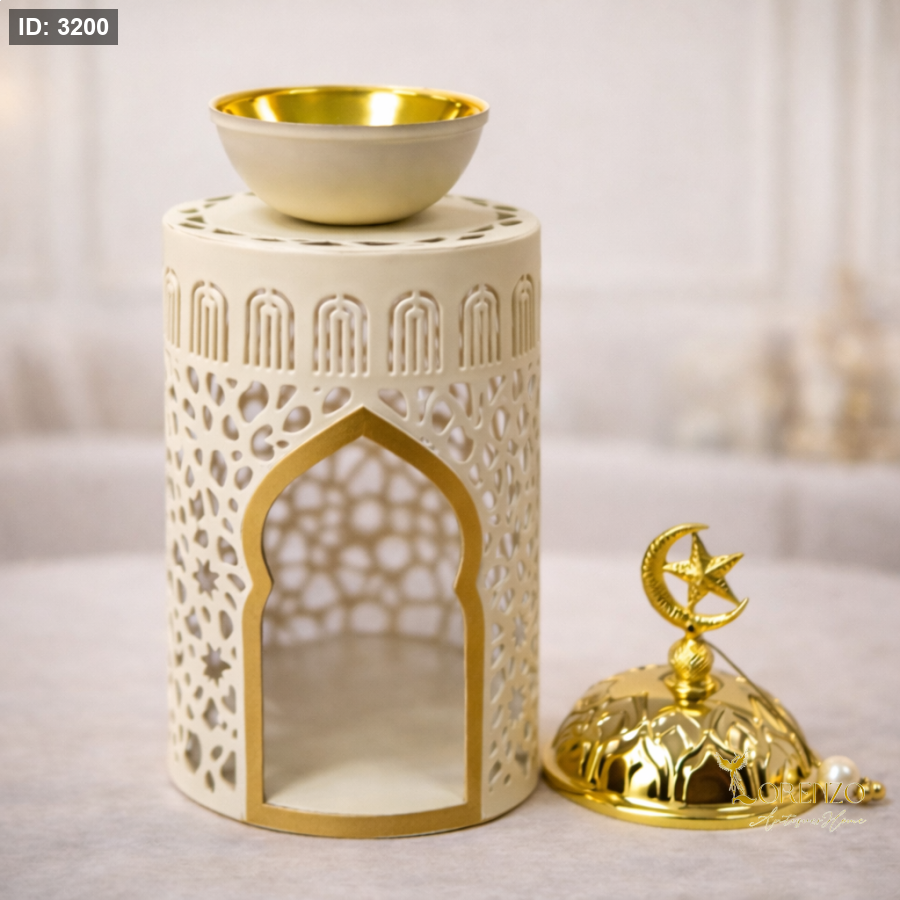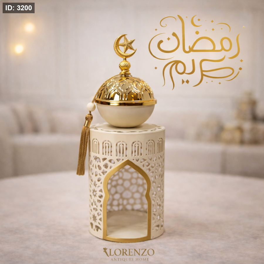 مبخرة ديكور رمضانية – لون كريمي مع ذهبي