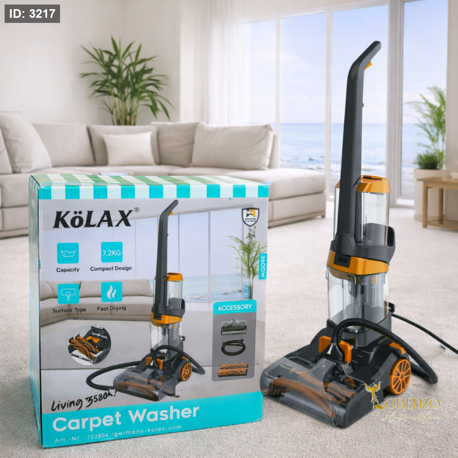 ماكينة غسيل سجاد، غسالة سجاد، ماكينة تنظيف سجاد، غسالة موكيت، جهاز تنظيف سجاد، Carpet Washer، KOLAX Carpet Washer، ماكينة تنظيف أرضيات، ماكينة تنظيف بالبخار، غسالة سجاد قوية، ماكينة تنظيف منزلية، غسالة سجاد 3600 واط، تنظيف سجاد عميق، جهاز شفط وتنظيف سجاد، ماكينة تنظيف لورينزو