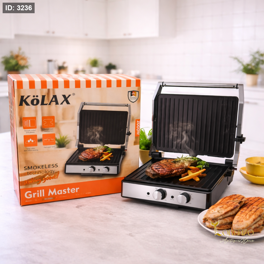 شواية كهربائية، شواية بدون دخان، شواية KOLAX، Grill Master، شواية مطبخ، شواية توست، شواية ستيك، شواية دجاج، شواية داخلية، شواية كهرباء 2000 واط، جهاز شواء منزلي، شواية ألواح غير لاصقة، أجهزة مطبخ لورينزو