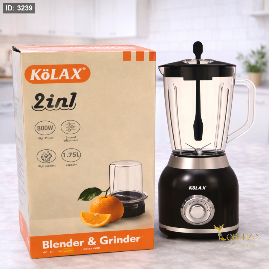خلاط كولاكس، خلاط KOLAX، Blender Grinder، خلاط مع مطحنة، خلاط 800 واط، خلاط 1.75 لتر، خلاط عصير، خلاط سموذي، مطحنة قهوة، مطحنة بهارات، خلاط مطبخ عملي، خلاط عائلي، أجهزة مطبخ لورينزو، خلاط متعدد الاستخدامات