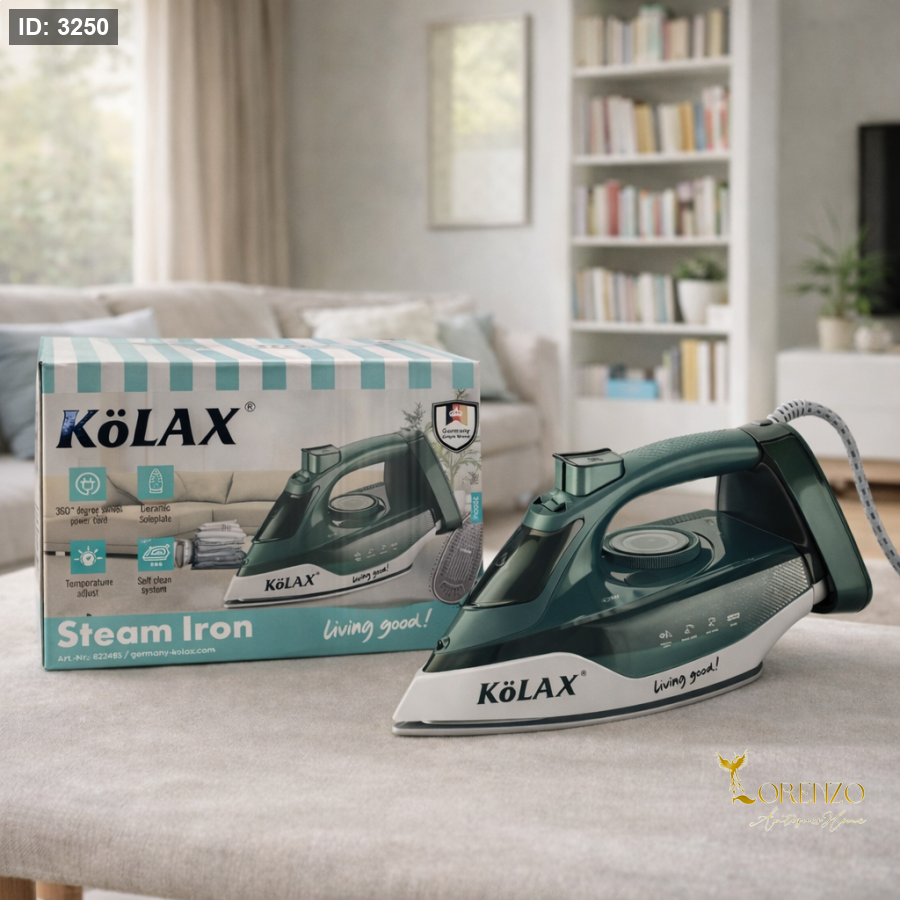 مكواة البخار KÖLAX Steam Iron صُممت لتمنحك نتائج كيّ مثالية وسريعة داخل المنزل، مع قوة عالية وتحكم دقيق في الحرارة، لتناسب جميع أنواع الأقمشة من الخفيفة إلى الثقيلة.