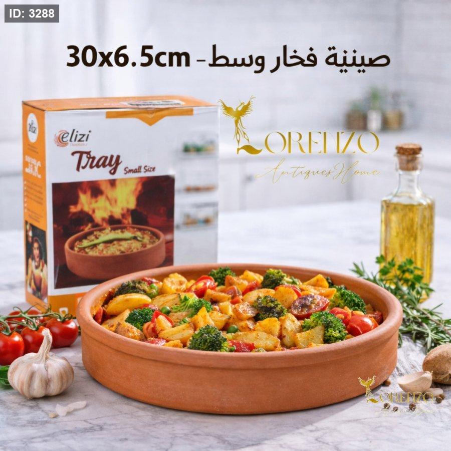 إذا كنتِ تبحثين عن حجم عملي يناسب الاستخدام اليومي ويقدم كمية مثالية للعائلة الصغيرة، فصينية الفخار ELIZI مقاس 30×6.5 سم هي الخيار المتوازن بين السعة والسهولة في التقديم.