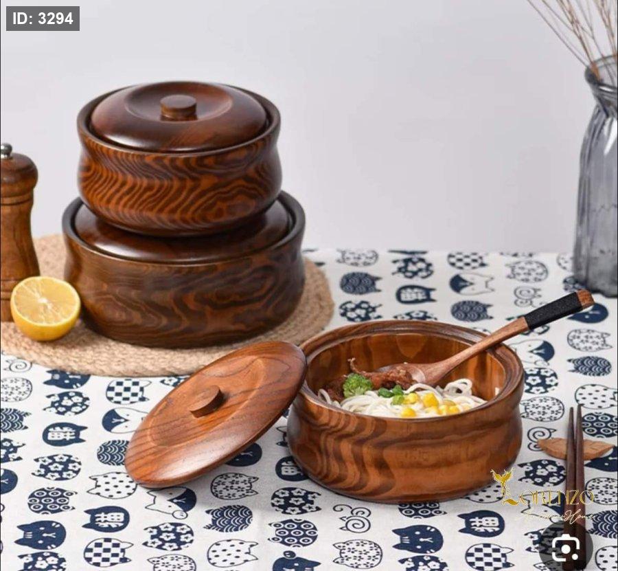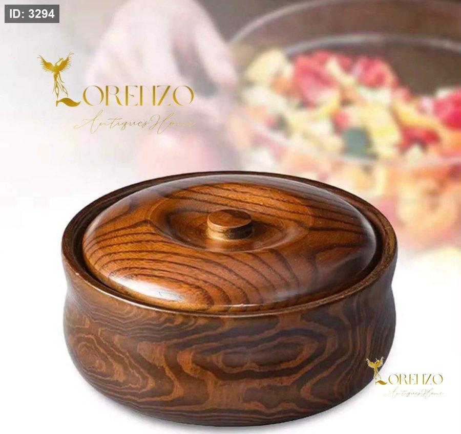 وعاء تقديم خشبي بغطاء – لمسة طبيعية دافئة لضيافتك