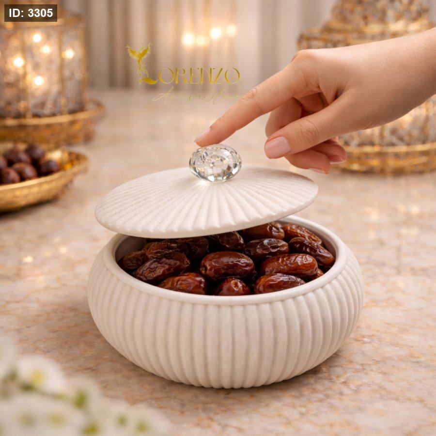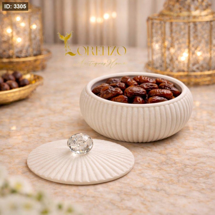مضيفة ريزن صغيرة، علبة تمر فخمة، علبة شوكولاته بغطاء، مضيفة ضيافة 15 سم، وعاء تقديم أنيق، علبة حلويات صغيرة، candy dish resin، small candy bowl with lid، decorative serving bowl، اكسسوارات طاولة ضيافة، ضيافة رمضان، علبة تقديم فخمة