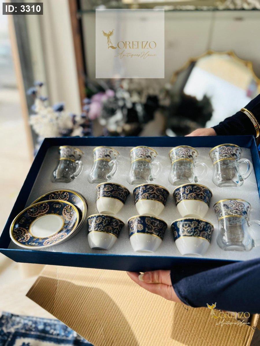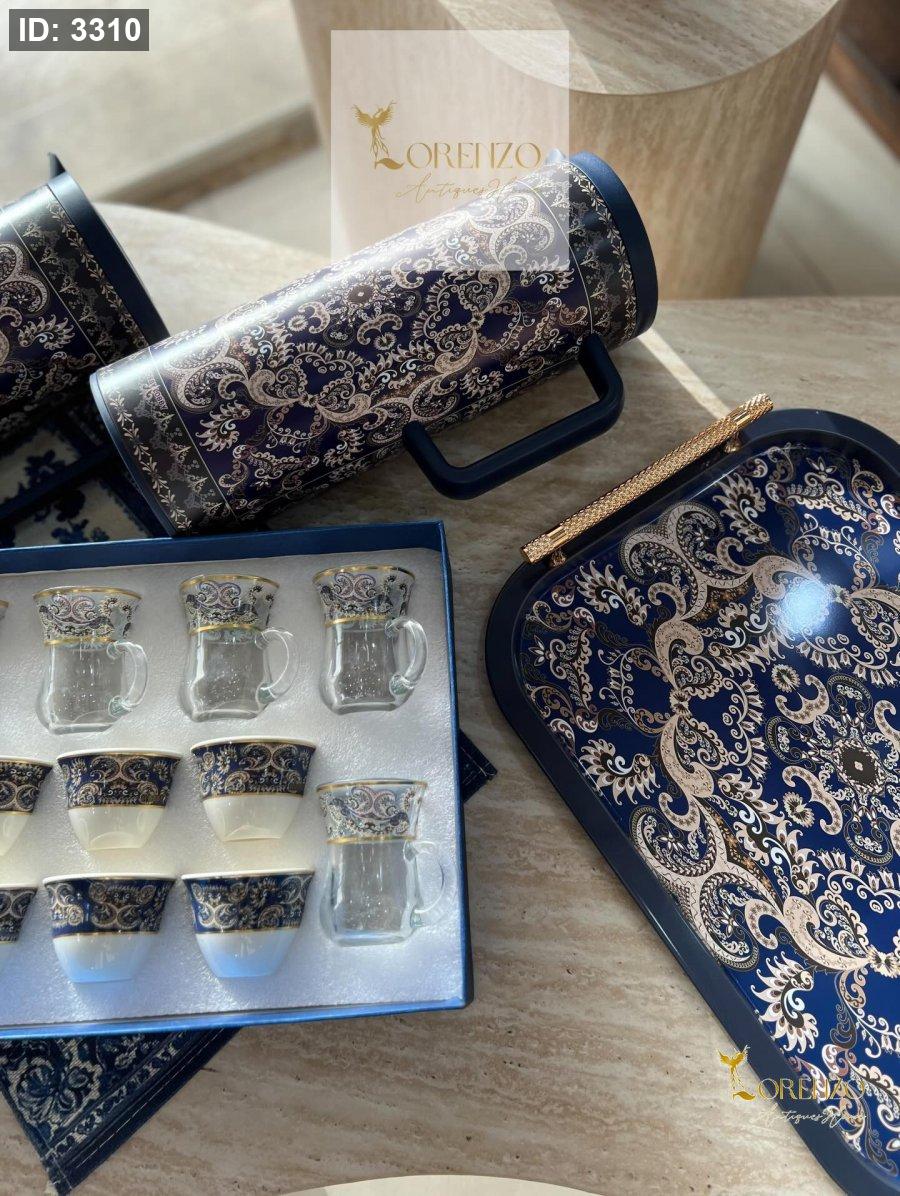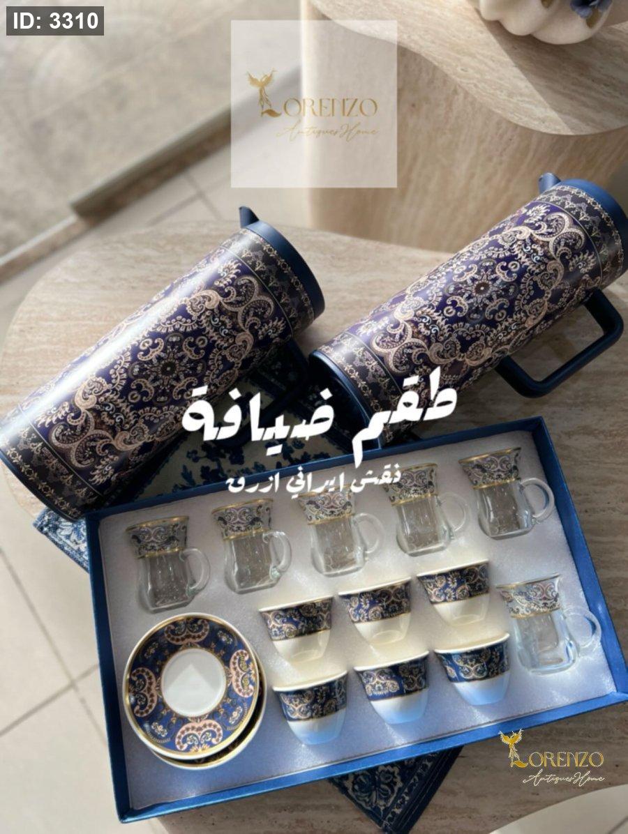 طقم شاي فاخر، طقم قهوة عربي، طقم ضيافة، صينية شاي مزخرفة، كاسات شاي مع صحون، فناجين قهوة عربية، طقم ضيافة رمضاني، أدوات ضيافة فخمة، Lorenzo Home