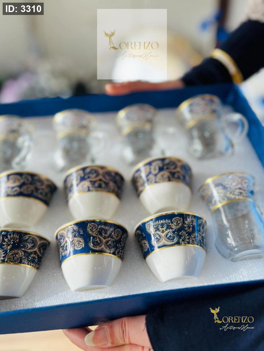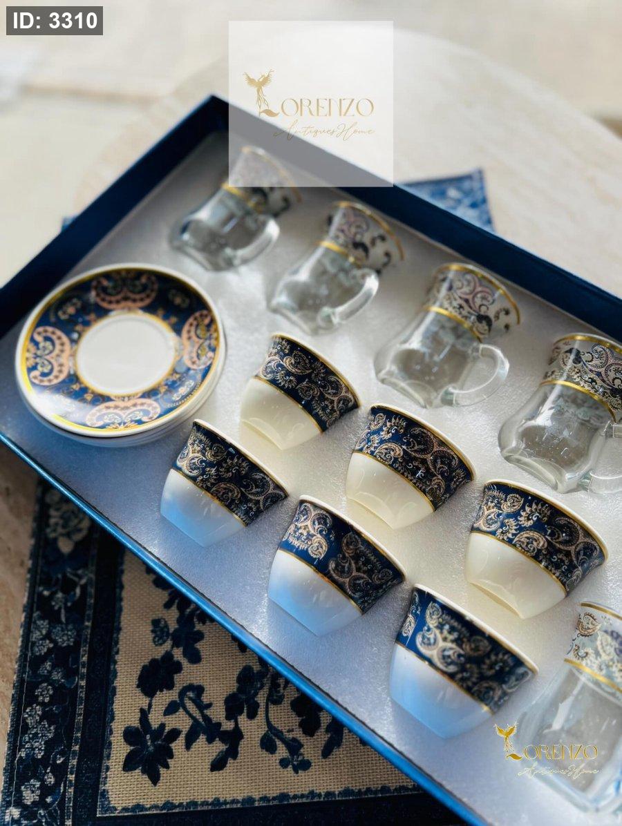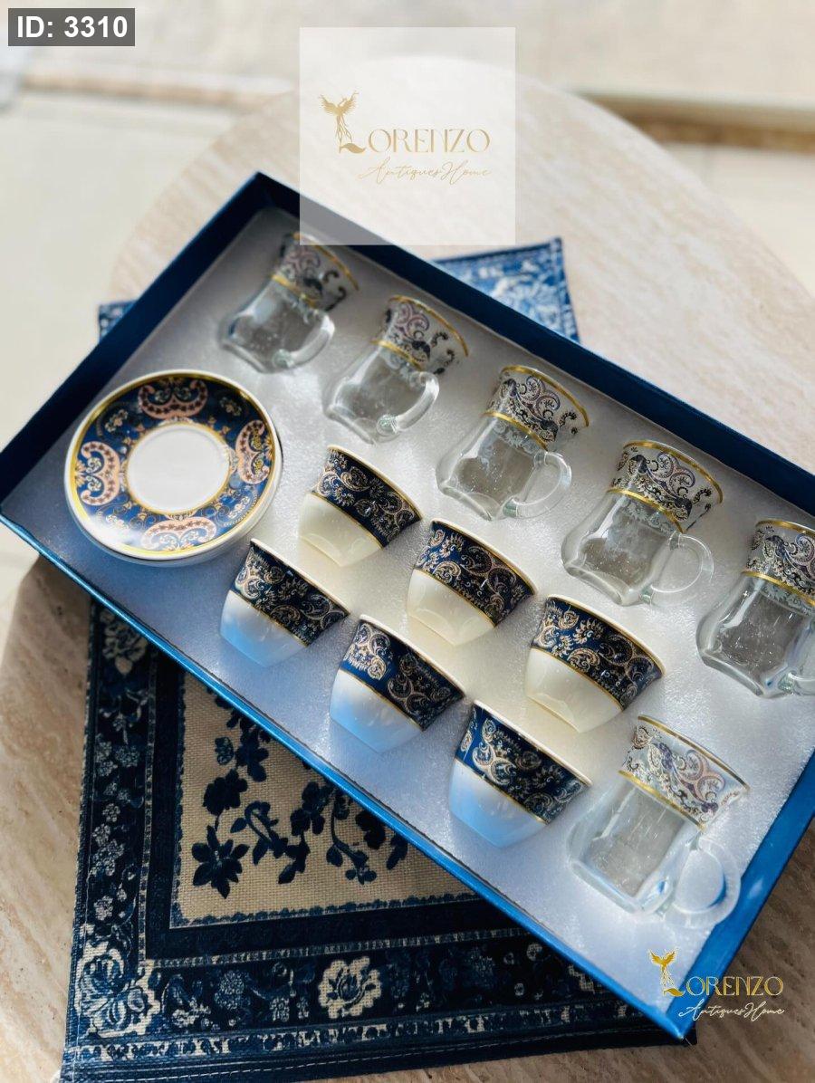 طقم شاي فاخر، طقم قهوة عربي، طقم ضيافة، صينية شاي مزخرفة، كاسات شاي مع صحون، فناجين قهوة عربية، طقم ضيافة رمضاني، أدوات ضيافة فخمة، Lorenzo Home