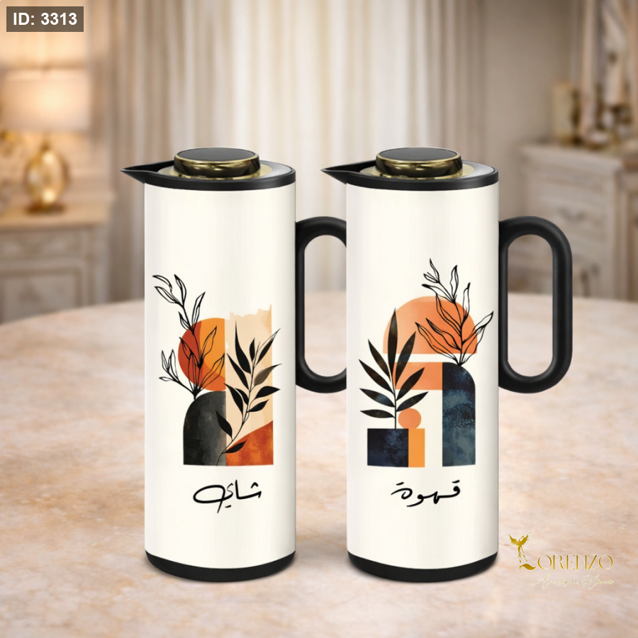 النقوش مستوحاة من الطبيعة بأسلوب هندسي عصري، مع كتابة عربية واضحة لكلمتي “شاي” و “قهوة”، ما يضفي طابعاً راقياً ومتناسقاً مع مختلف أنماط الديكور.