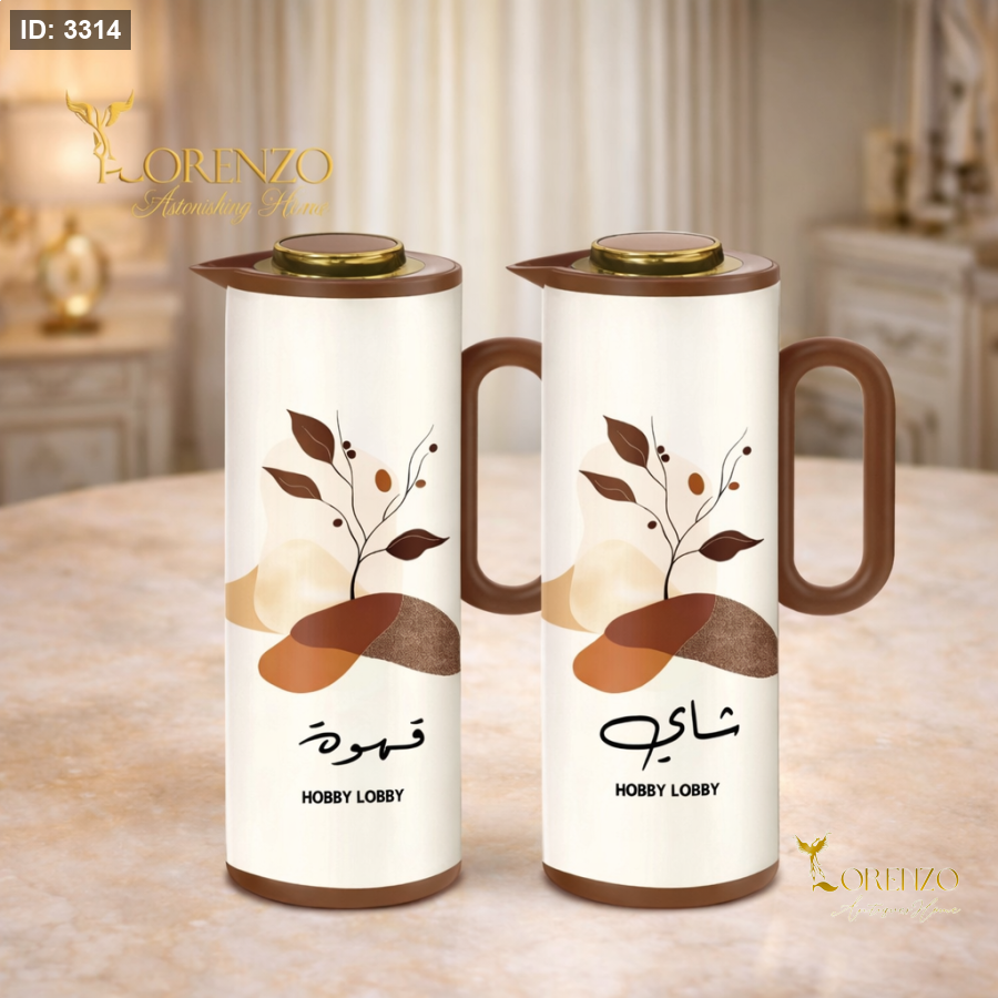 براد شاي وبراد قهوة – تصميم بيج وبني كلاسيكي | سعة 1 لتر