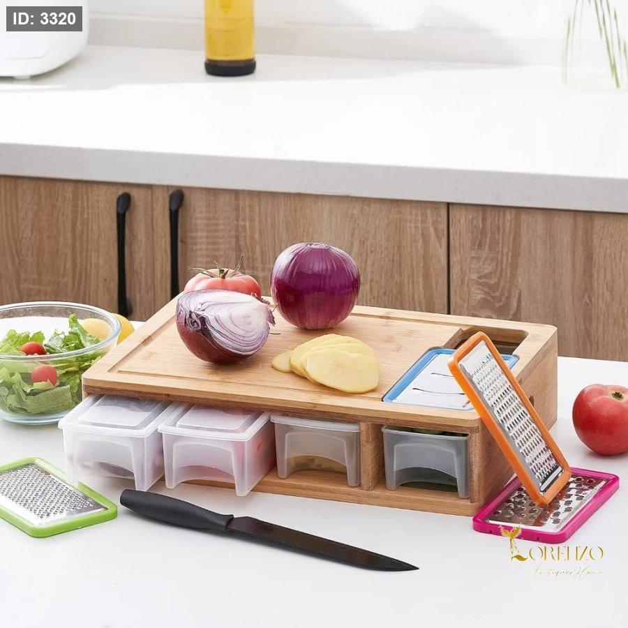 لوح تقطيع بامبو، لوح تقطيع مع أدراج، chopping board مع تخزين، لوح تقطيع للمطبخ، أدوات مطبخ ذكية، cutting board organizer، لوح تقطيع احترافي، أدوات تحضير الطعام