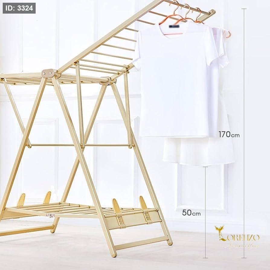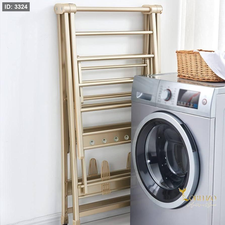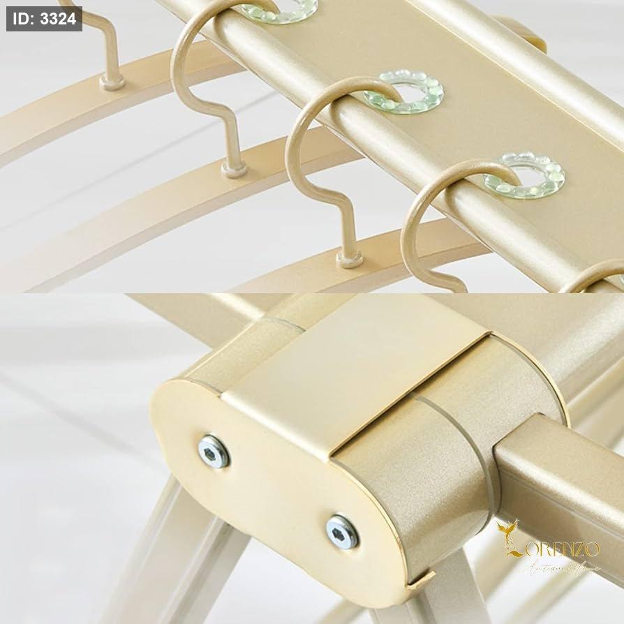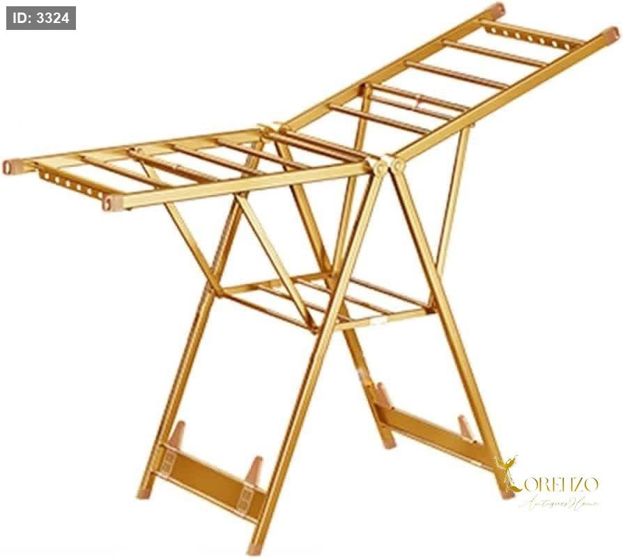 منشر غسيل عملي مصنوع من الألمنيوم عالي الجودة بتصميم ذهبي متين وأنيق، مناسب للاستخدام اليومي داخل المنزل أو في الشرفات وغرف الغسيل. يتميز بمساحة نشر أكبر لتحمل كمية ملابس أكثر، مع مفاصل مزدوجة تعزز الثبات والتحمل.