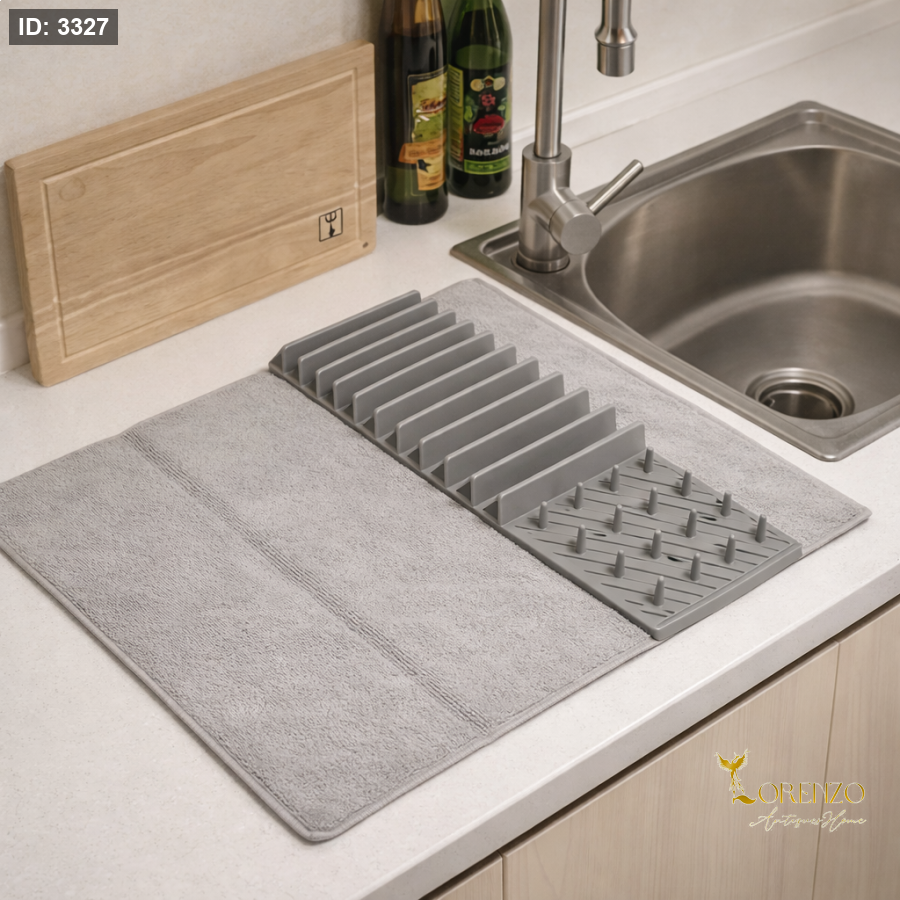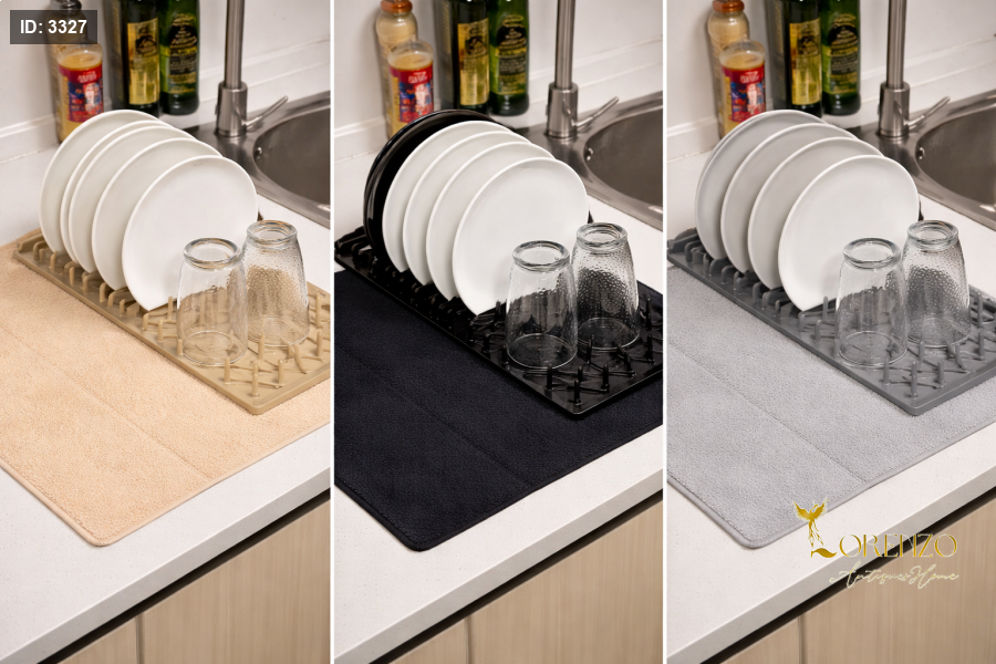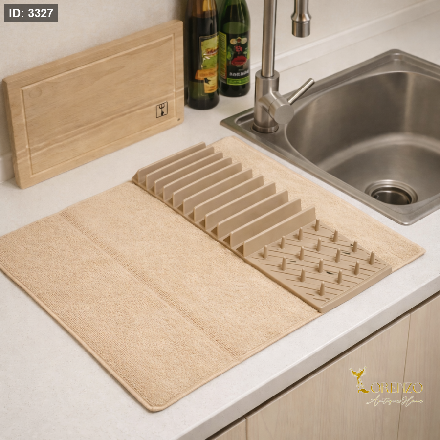 بفضل القاعدة الماصة للماء، يتم امتصاص الرطوبة بسرعة ومنع تجمع المياه، بينما يوفر حامل الصحون مساحة مناسبة لترتيب الصحون والأدوات بشكل ثابت وآمن.