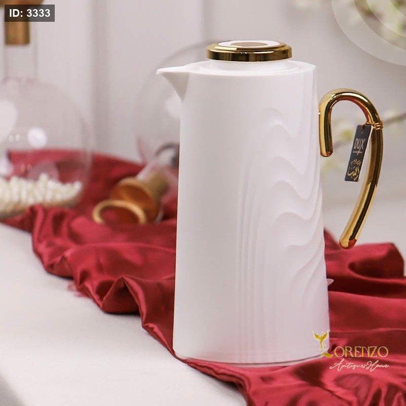 بلون أبيض راقٍ مع تفاصيل ذهبية لامعة على الغطاء والمقبض، ليعطي لمسة فخمة تناسب ضيافتك اليومية والمناسبات الخاصة.