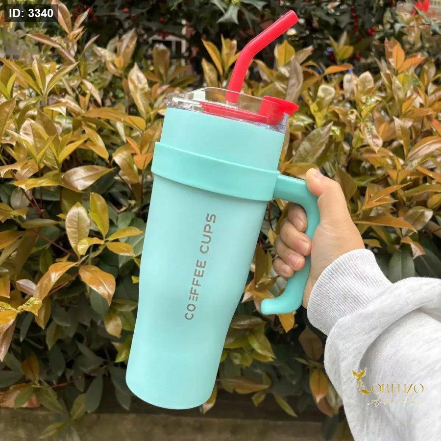 يأتي بمقبض جانبي مريح وغطاء محكم مع شفاط قابل لإعادة الاستخدام، ليكون خيار مثالي للمشروبات الباردة والساخنة في العمل، الجامعة أو أثناء التنقل.