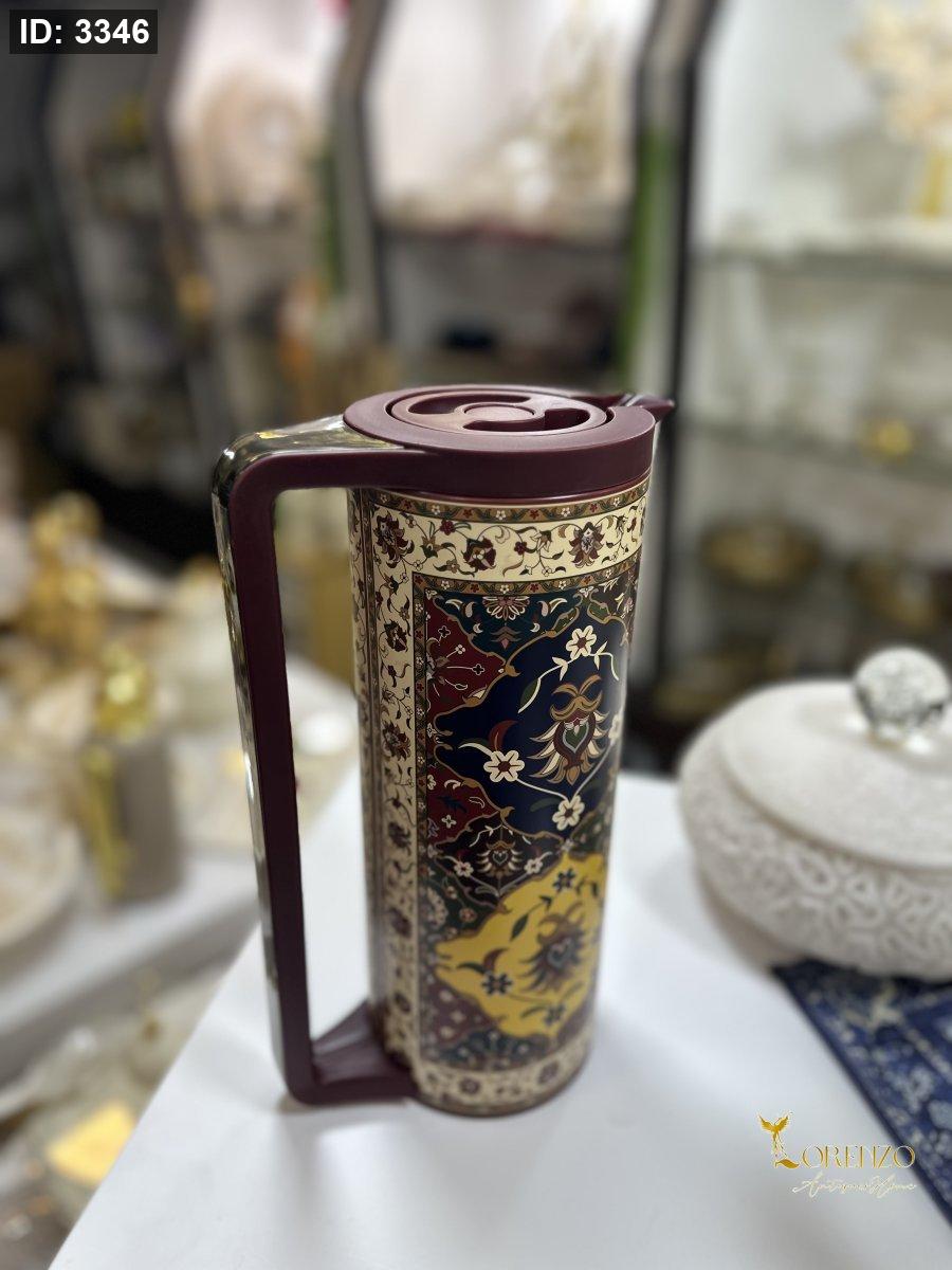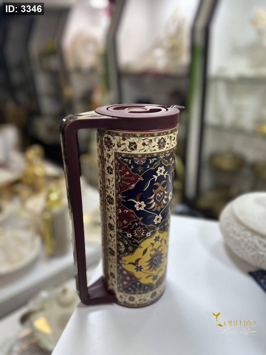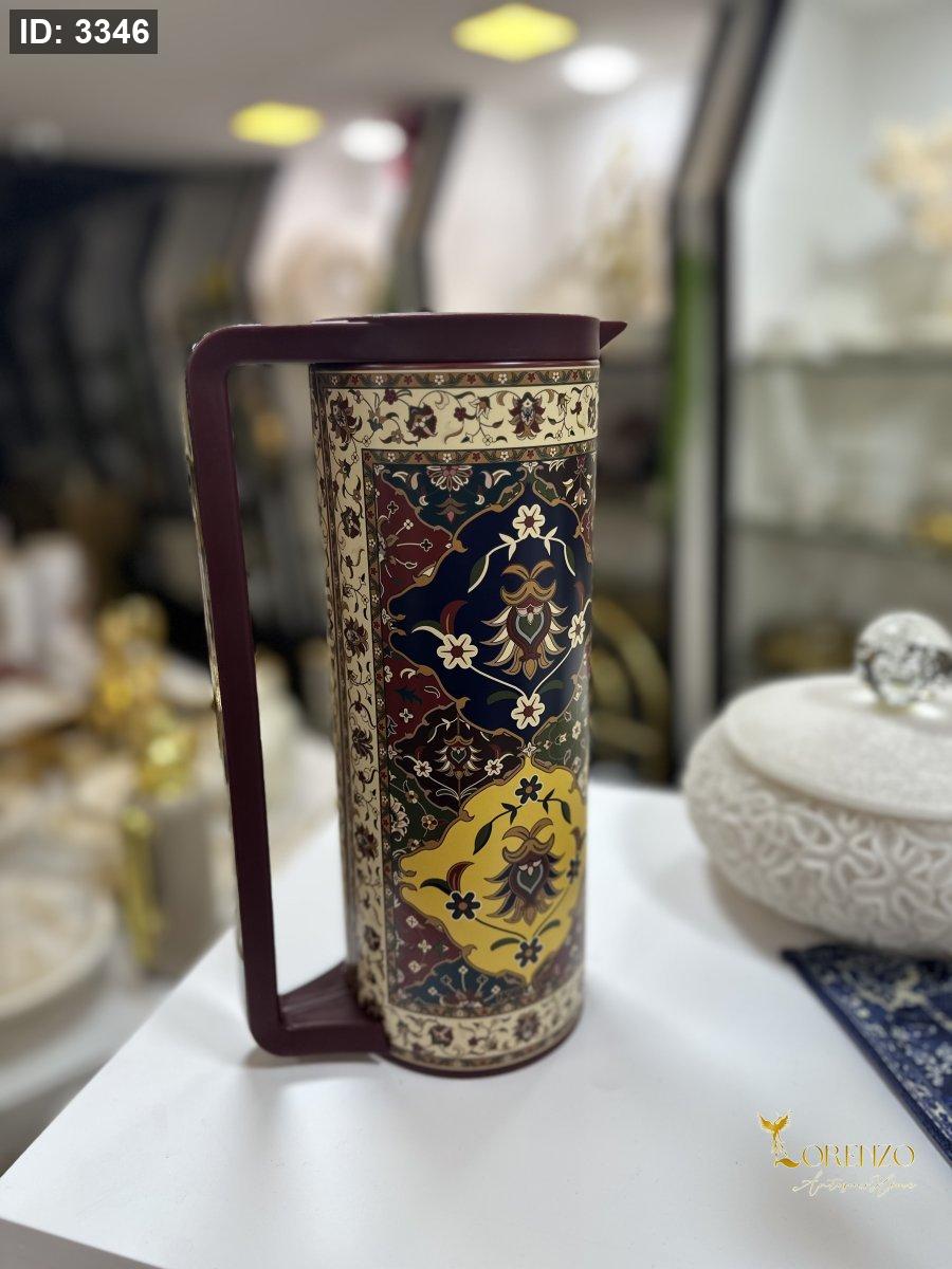 أضف لمسة فخامة وأناقة لمجلسك مع ترمس الضيافة المزخرف بتصميم شرقي راقٍ يجمع بين الجمال العملي والطابع التراثي. يتميز بنقوش فنية دقيقة وألوان فاخرة تناسب جلسات الضيافة اليومية والمناسبات الخاصة، ليكون قطعة مميزة على طاولة التقديم.
