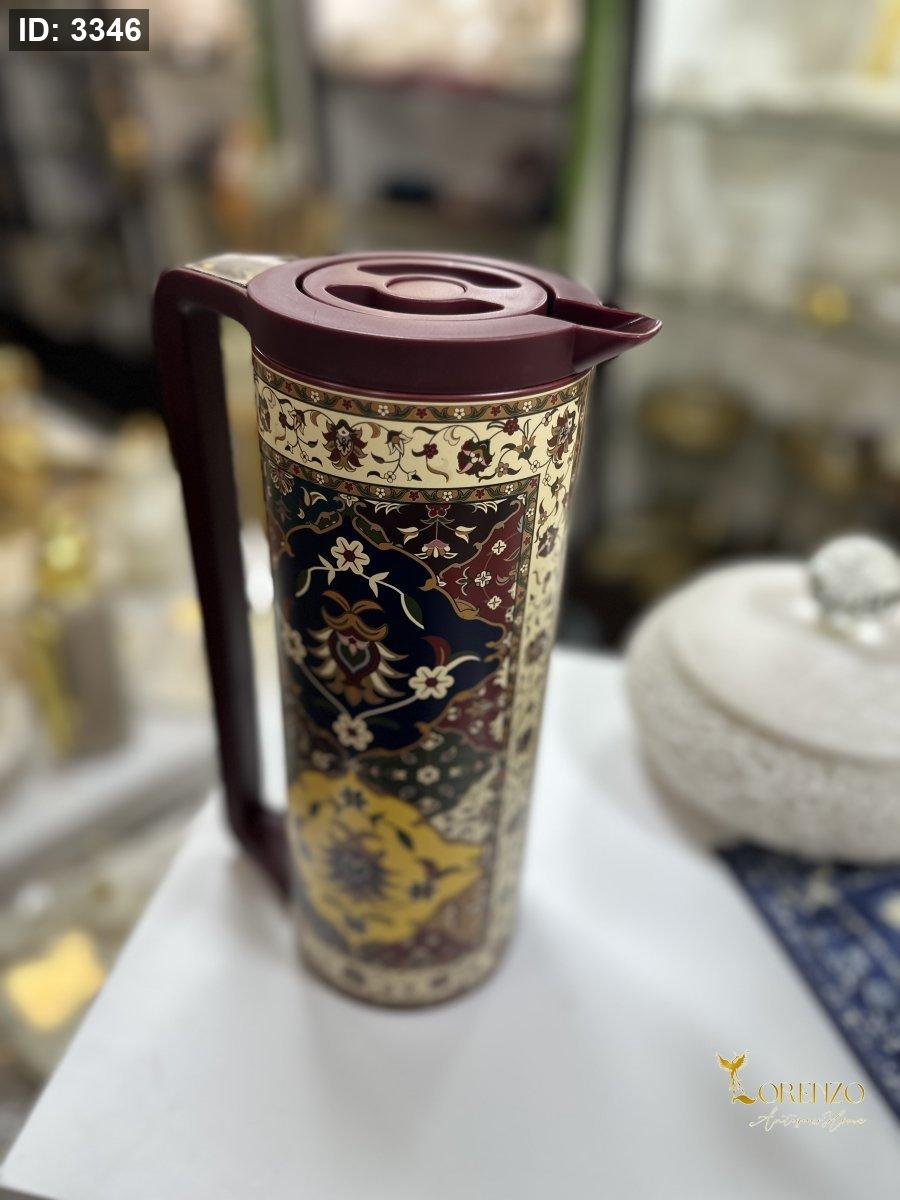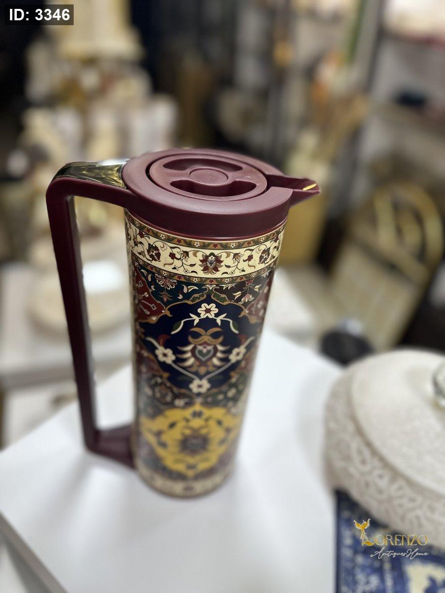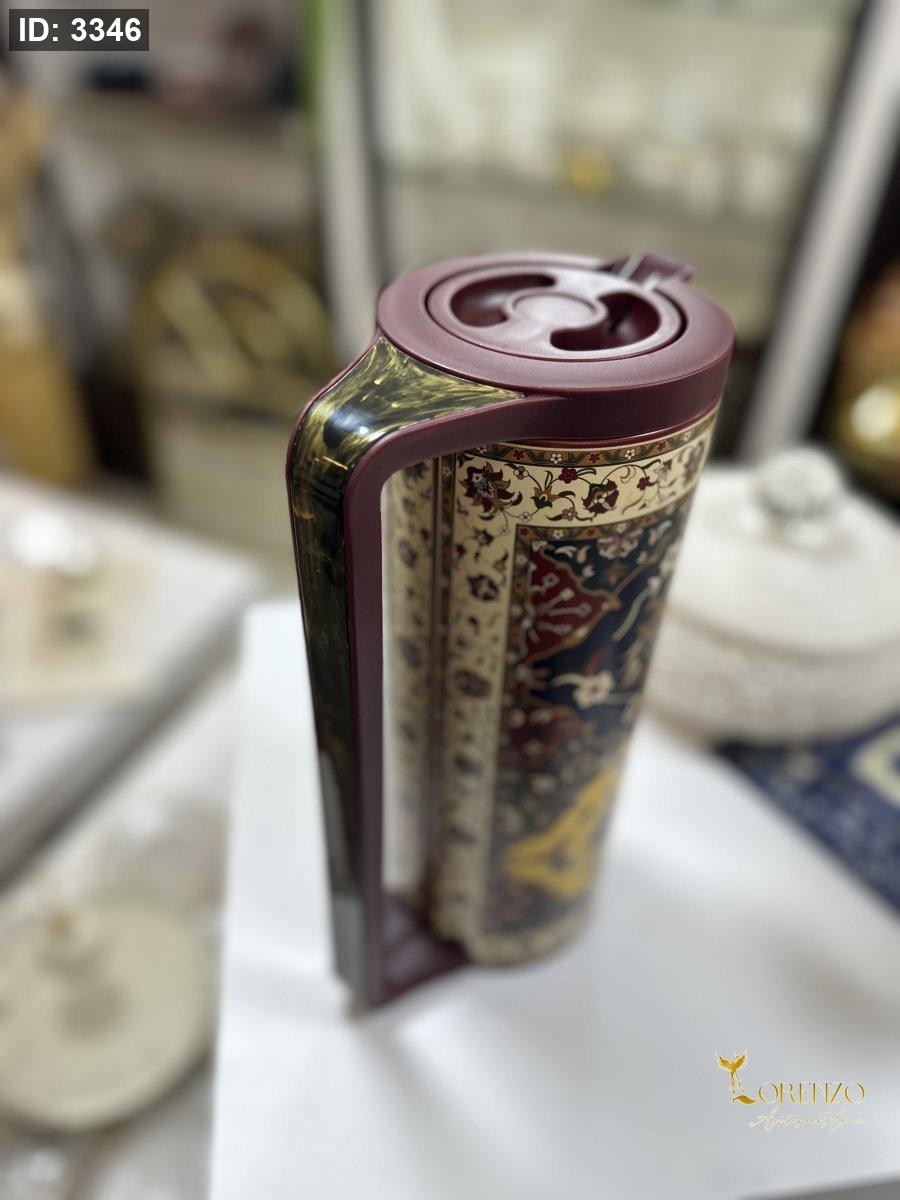 أضف لمسة فخامة وأناقة لمجلسك مع ترمس الضيافة المزخرف بتصميم شرقي راقٍ يجمع بين الجمال العملي والطابع التراثي. يتميز بنقوش فنية دقيقة وألوان فاخرة تناسب جلسات الضيافة اليومية والمناسبات الخاصة، ليكون قطعة مميزة على طاولة التقديم.