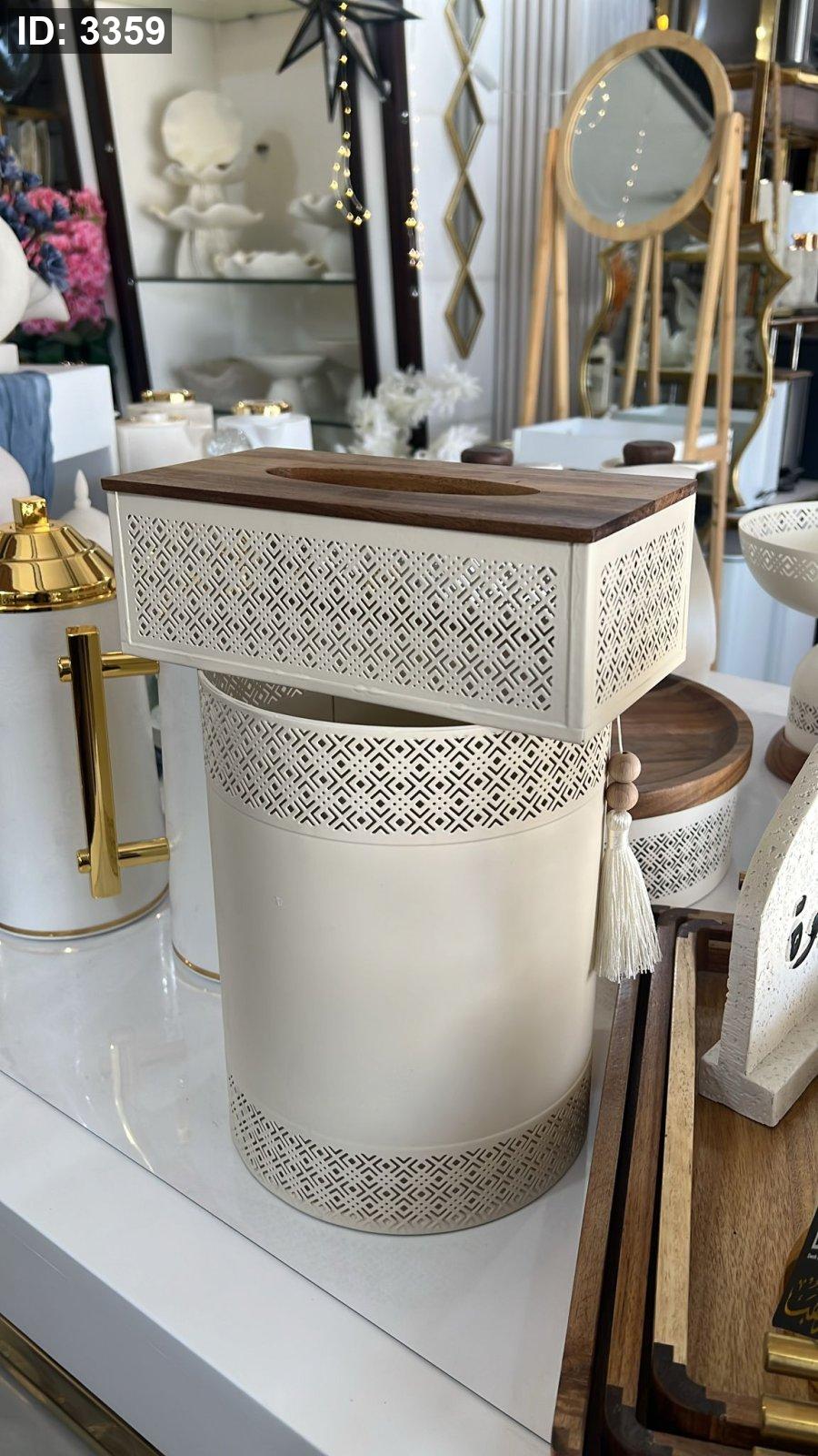 طقم سلة مع علبة محارم بيج