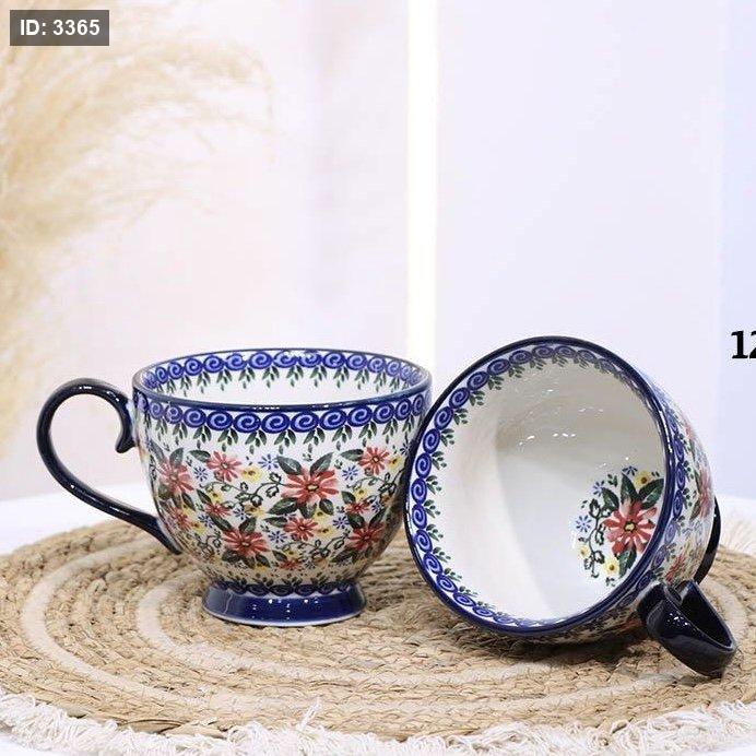 كاسة ماغ بورسلان خزف 12سم شكل وردة اطار كحلي