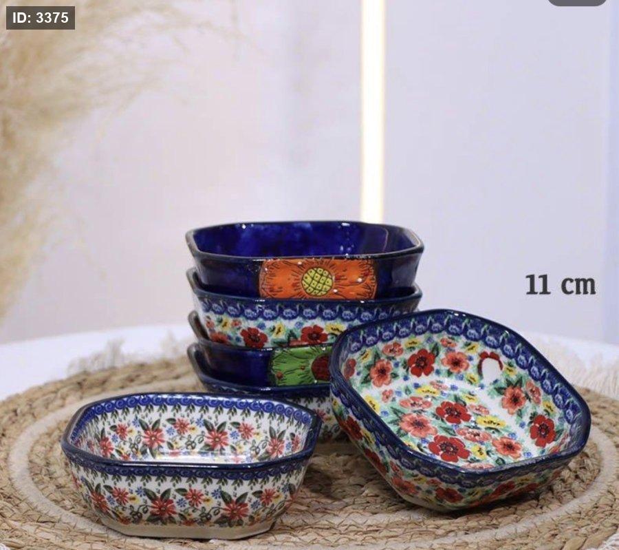 صحن بورسلان خزف 11سم شكل ثماني اطار كحلي
