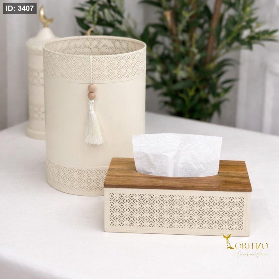 طقم سلة مع علبة محارم تنك بيج