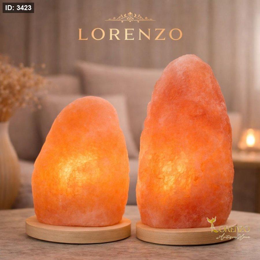 مصباح ملح طبيعي مستخرج من جبال الهيمالايا، يتميز بلونه الوردي-البرتقالي الدافئ الذي يمنح أجواء هادئة ومريحة داخل المنزل.