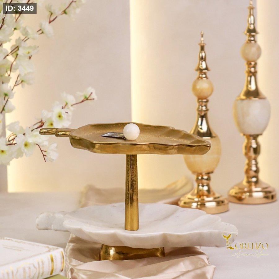 مضيفة طبقتين نحاس هندي مع رخام شكل ورقة D105