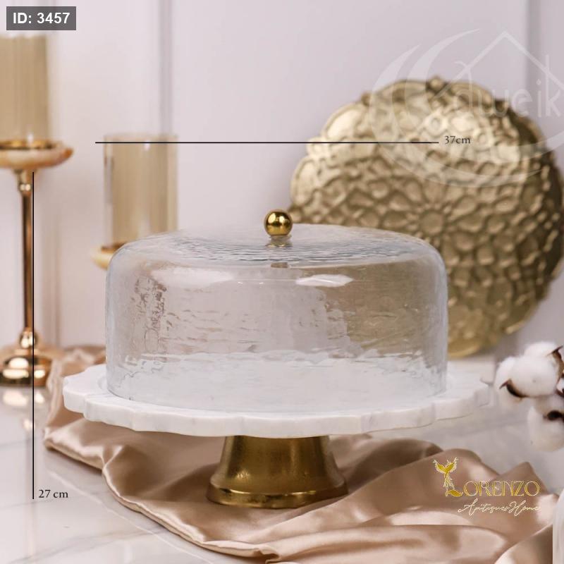 مضيفة رخام مع صحون مكسرات نحاس هندي غطا زجاج D122