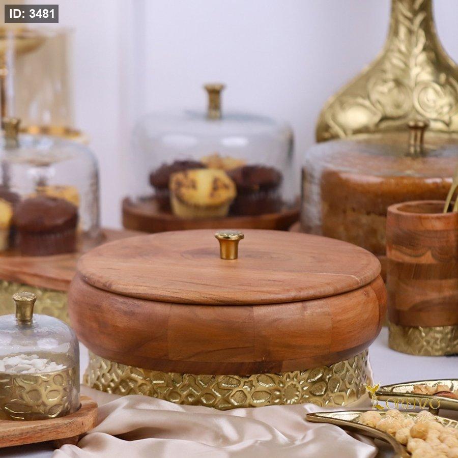 مضيفة نحاس و خشب هندي بغطاء 30 سم D308