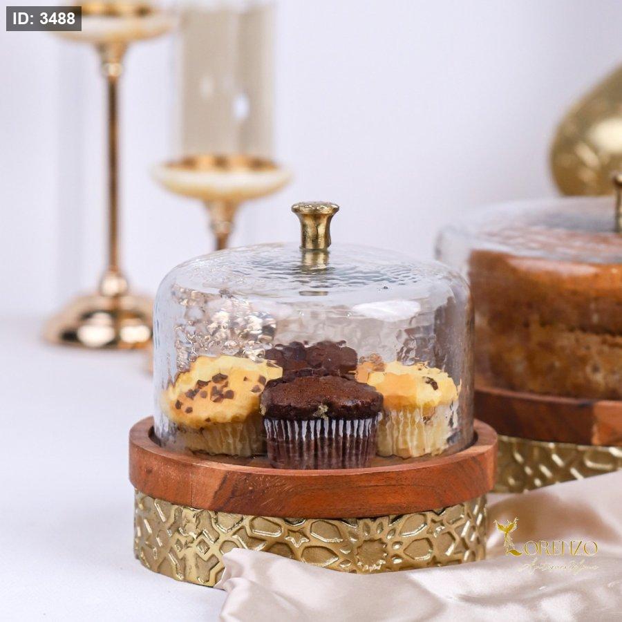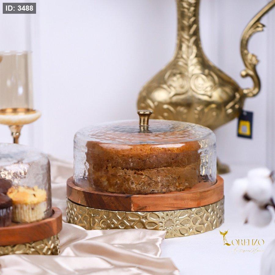 جاط كعك خشب و نحاس هندي بغطاء زجاج