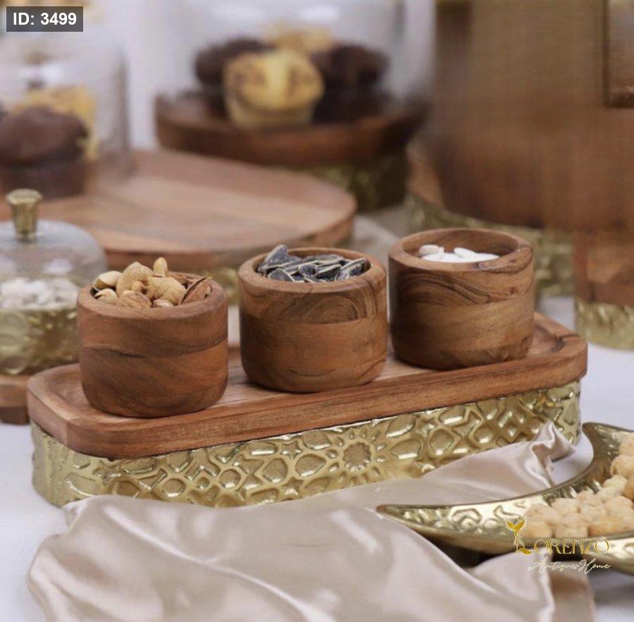 طقم /4 جاط + 3 صحون مكسرات خشب و نحاس هندي D316