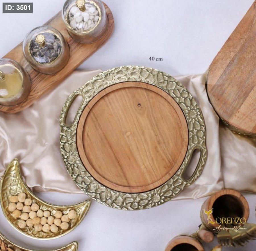 صينية ضيافة خشب و نحاس هندي 40 سم D317