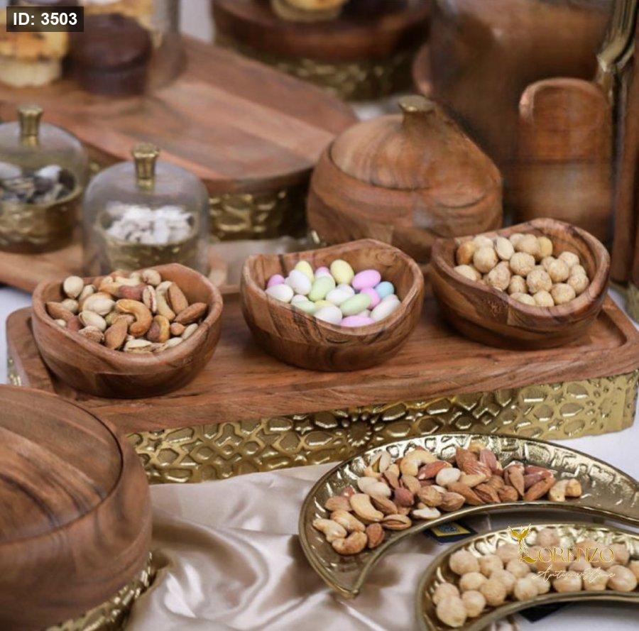 طقم جاط + 3 صحون مكسرات خشب و نحاس هندي D313