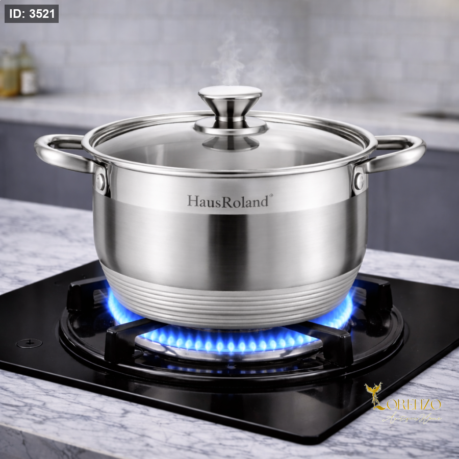 طنجرة عملية وعصرية من HausRoland Germany Design مصممة لتوفير أداء طبخ ممتاز وجودة تدوم طويلاً. مصنوعة من الستانلس ستيل عالي الجودة مع قاعدة متعددة الطبقات لضمان توزيع متساوٍ للحرارة، مما يجعلها مثالية لتحضير الشوربات، الأرز، المعكرونة والعديد من الأطباق اليومية.