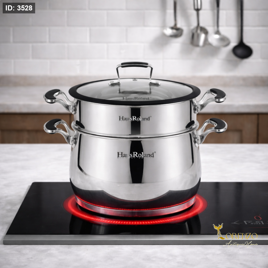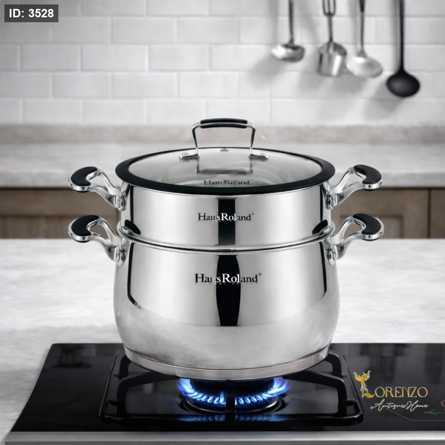 طنجرة تبخير ستانلس ستيل للمفتول HausRoland HR200-2 مقاس 26 سم – طنجرة مع طبقة تبخير وغطاء زجاج