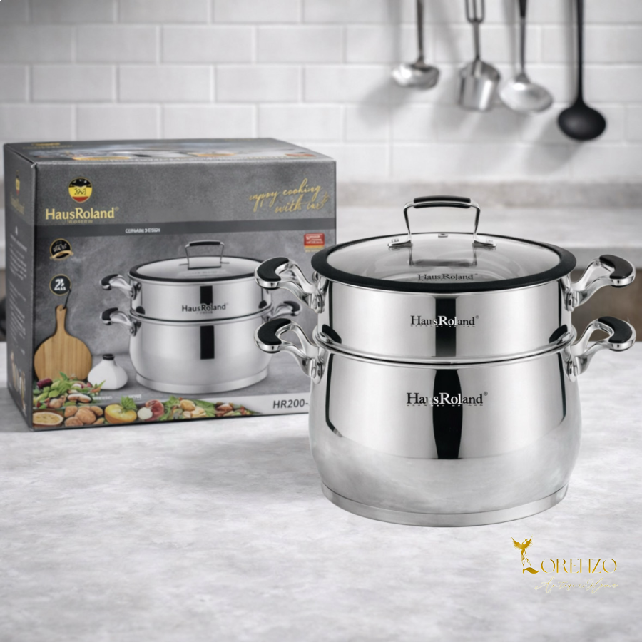 استمتع بطهي صحي وسهل مع طنجرة التبخير HausRoland HR200-3 المصممة لتحضير الأطعمة بالبخار بطريقة احترافية. تتميز هذه الطنجرة بتصميم عملي مكون من قدر طبخ سفلي مع طبقة تبخير علوية، مما يجعلها مثالية لتحضير المفتول والكسكسي والخضار واللحوم بالبخار مع الحفاظ على النكهة والقيمة الغذائية للطعام.