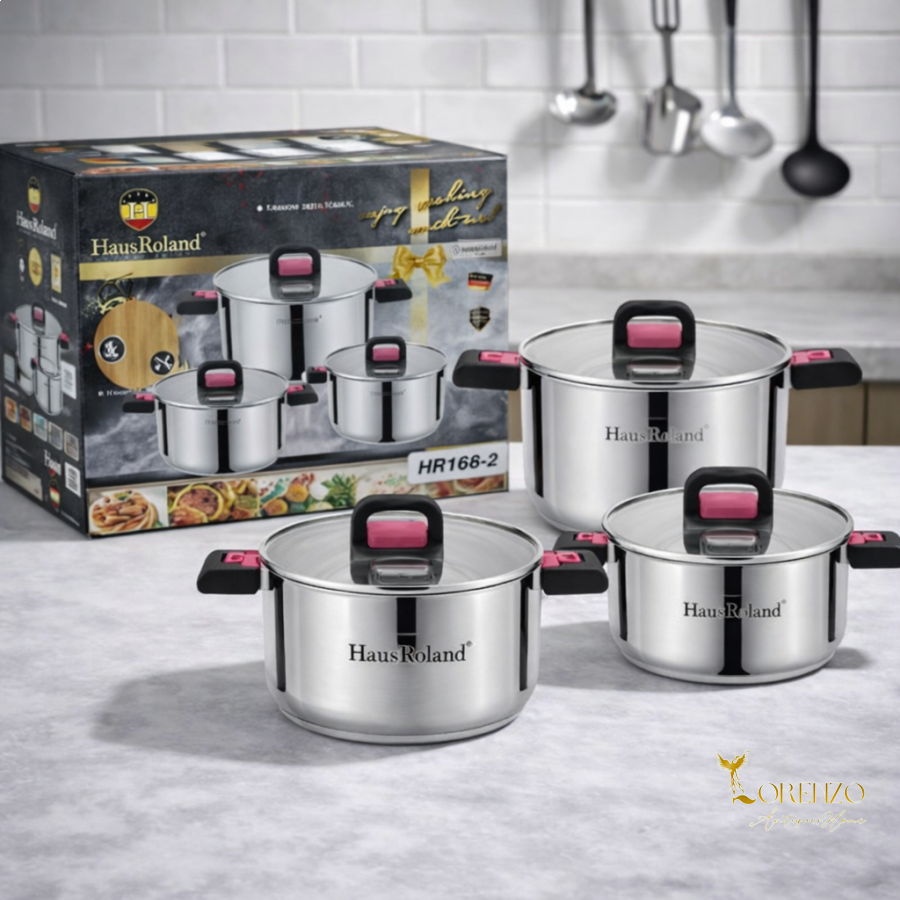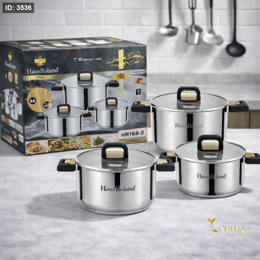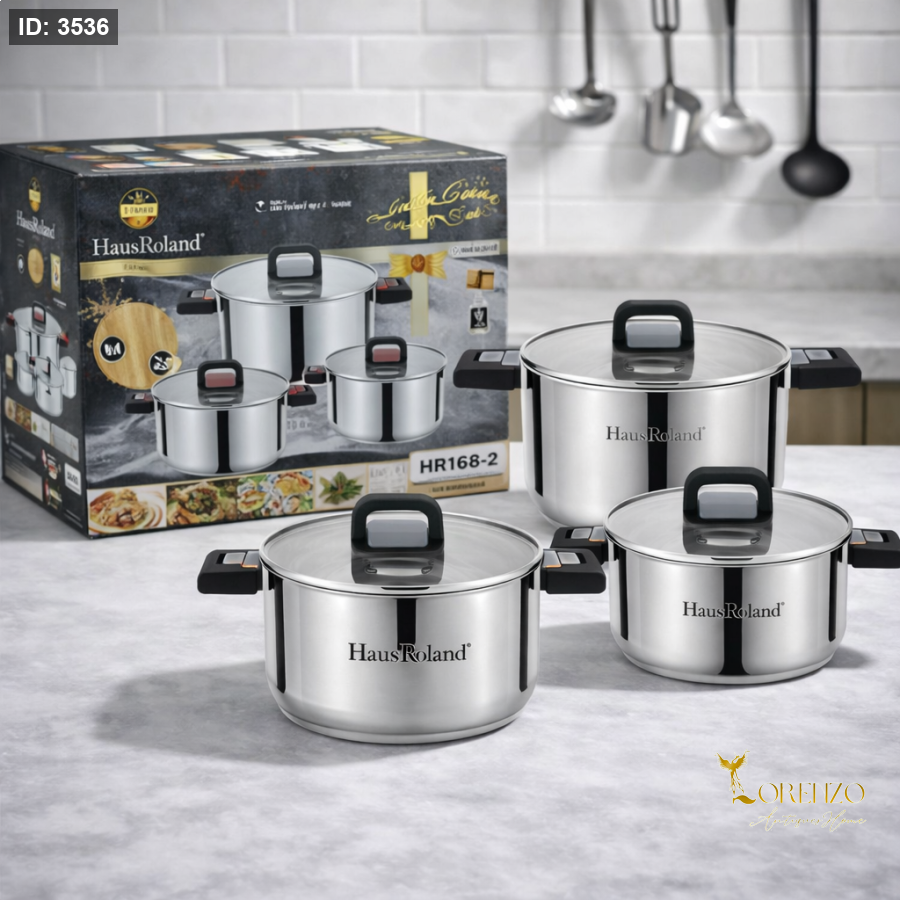 طقم طناجر ستانلس، طقم طبخ ستيل، طناجر مطبخ، طقم قدور ستانلس، طقم طناجر 6 قطع، طناجر HausRoland، طناجر بغطاء زجاج، طقم طبخ للمطبخ، cookware set stainless steel
