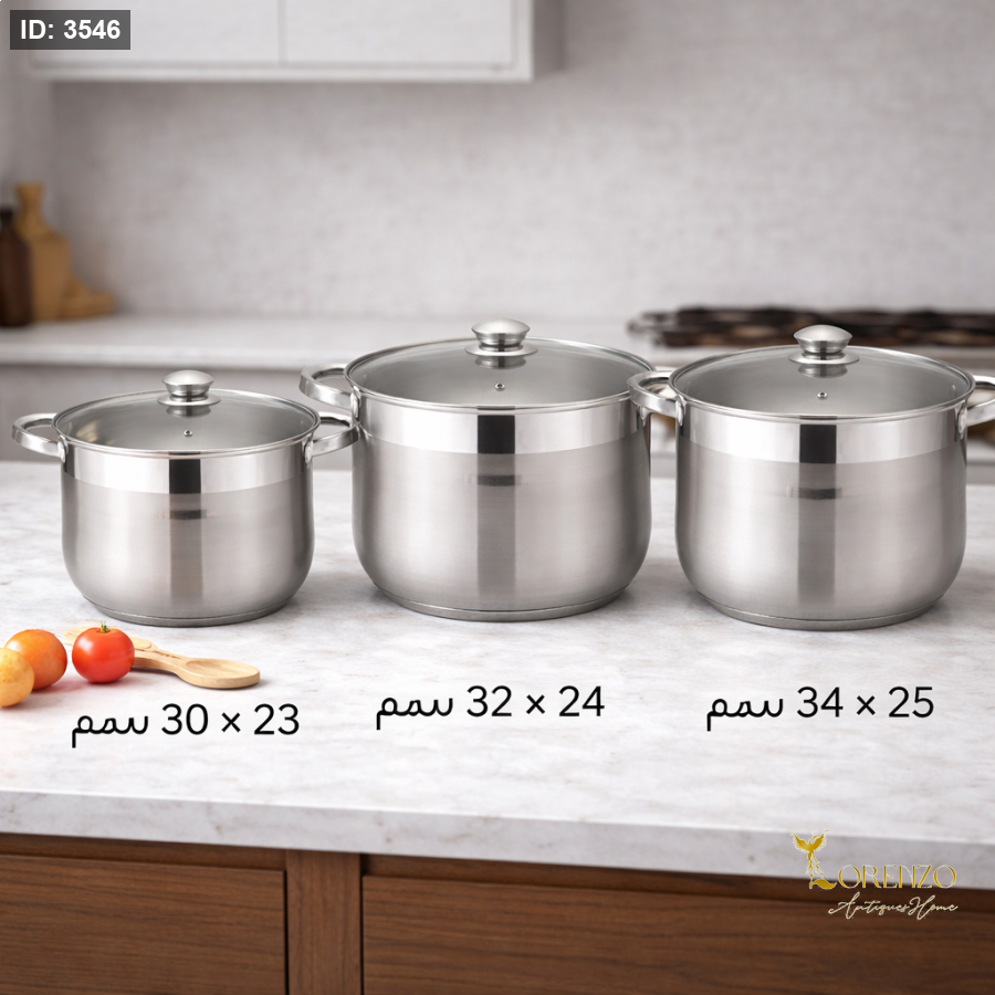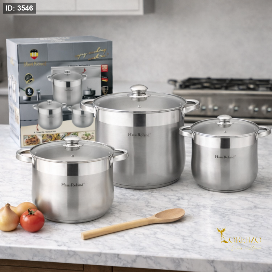 طناجر ستانلس ستيل ثقيل HausRoland HR186-4 مع أغطية زجاج – 3 أحجام كبيرة