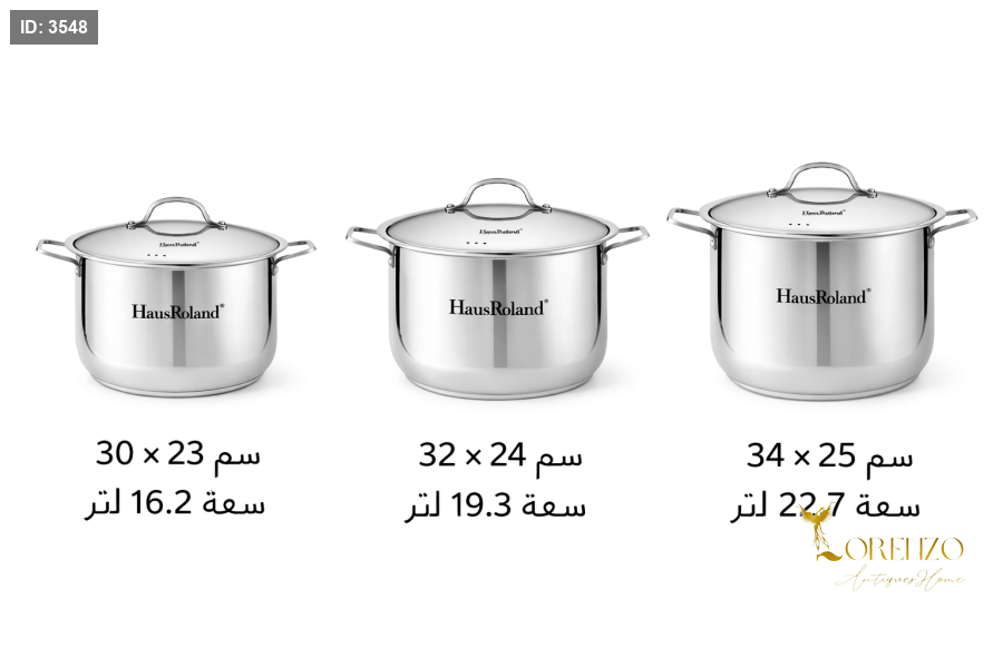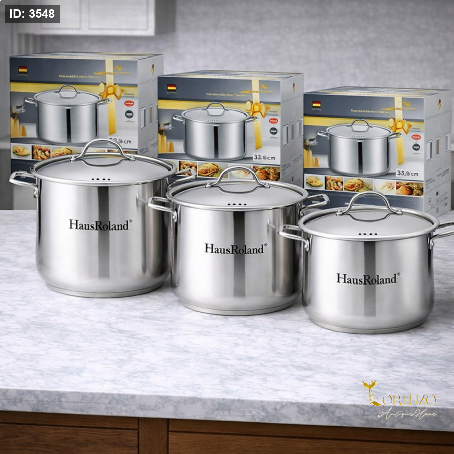 طناجر ستانلس ستيل HausRoland HR124-1 – ثلاث أحجام مع أغطية ستيل