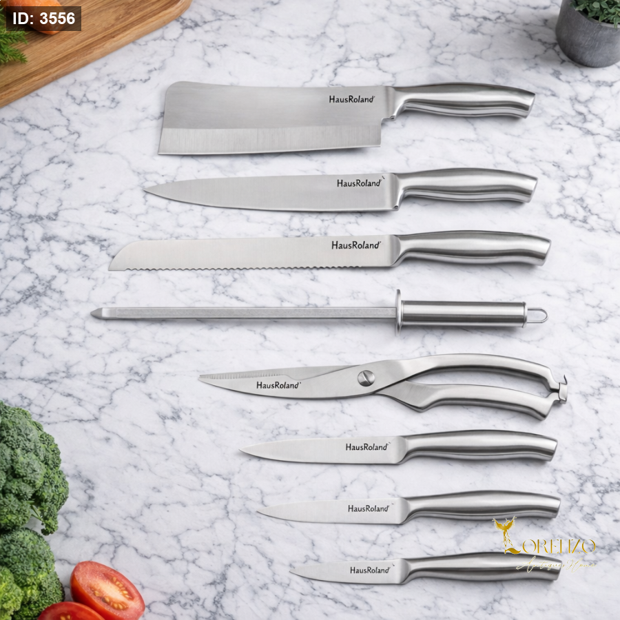 طقم سكاكين احترافي من HausRoland تصميم ألماني مصمم للاستخدام اليومي في المطبخ.