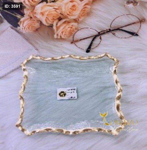 صحن ضيافة زجاج مربع اطار ذهبي