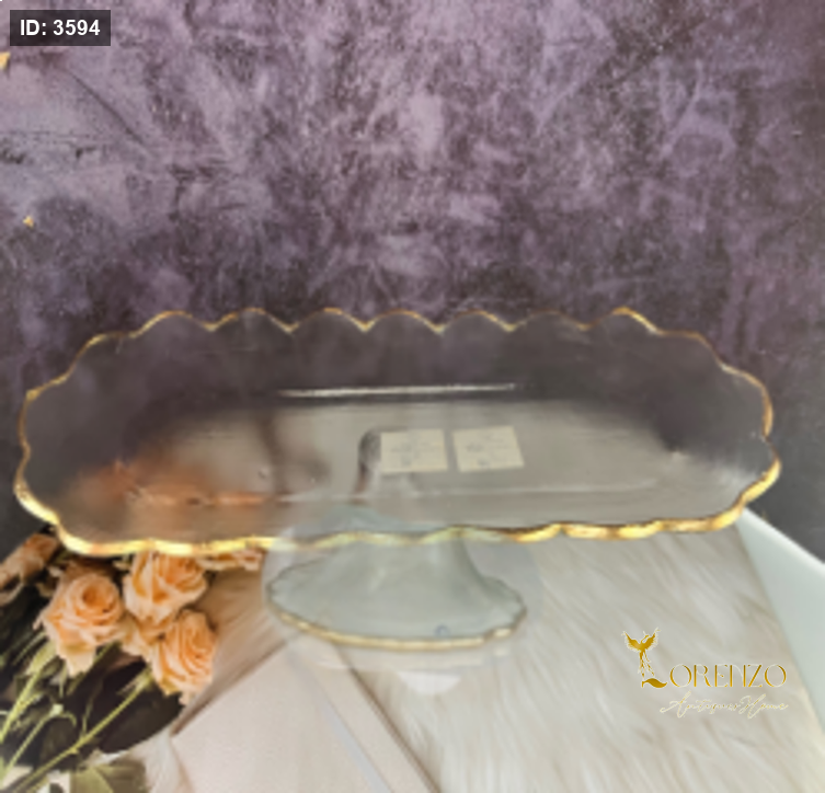 ستاند ضيافة زجاج بيضاوي مع قاعدة اطار ذهبي