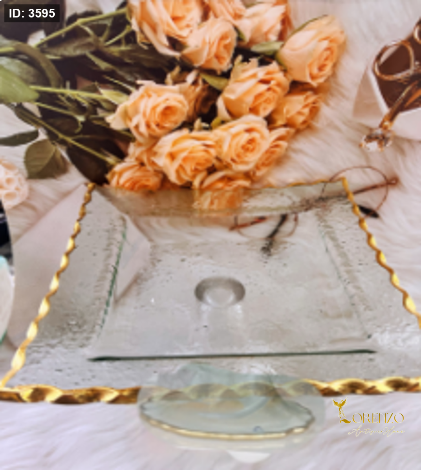 ستاند ضيافة مربع زجاج مع قاعدة اطار ذهبي