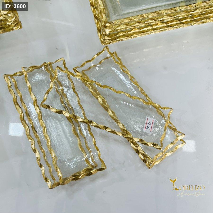صحن ضيافة زجاج مستطيل ميني اطار ذهبي 18-22