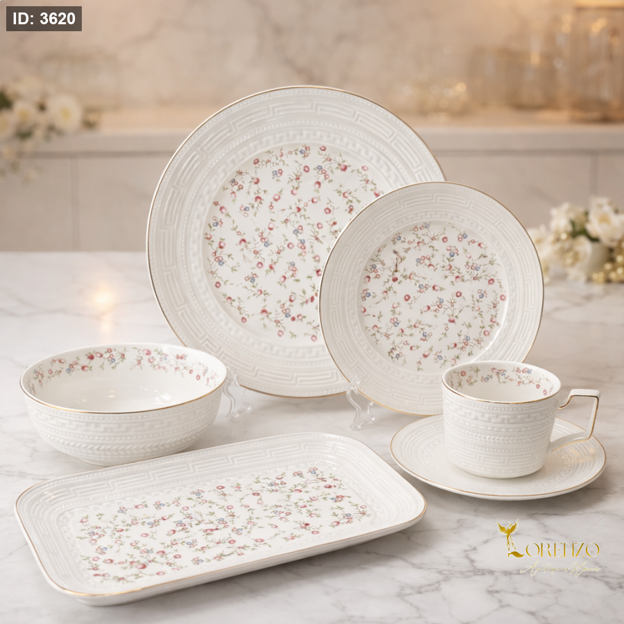 استمتع بتجربة ضيافة راقية مع هذا الطقم الأنيق بتصميمه الهادئ ونقشته الوردية الناعمة التي تضيف لمسة فخامة مميزة على كل طاولة 🍽️🌸