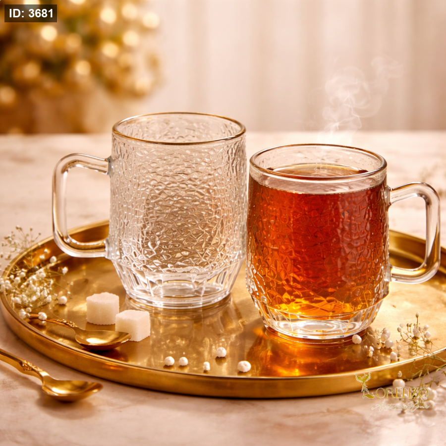 مصنوعة من زجاج عالي الجودة، تتحمل الاستخدام اليومي وتناسب المشروبات الساخنة والباردة، لتكون الخيار المثالي للضيافة أو للاستخدام اليومي بأسلوب أنيق.